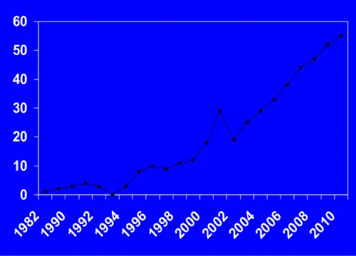 The frequency of BDH over the 30 years has been illustrated in figure 1. Nearly half of the BDH (221 cases; 48.6%) have been observed during the last decade.
